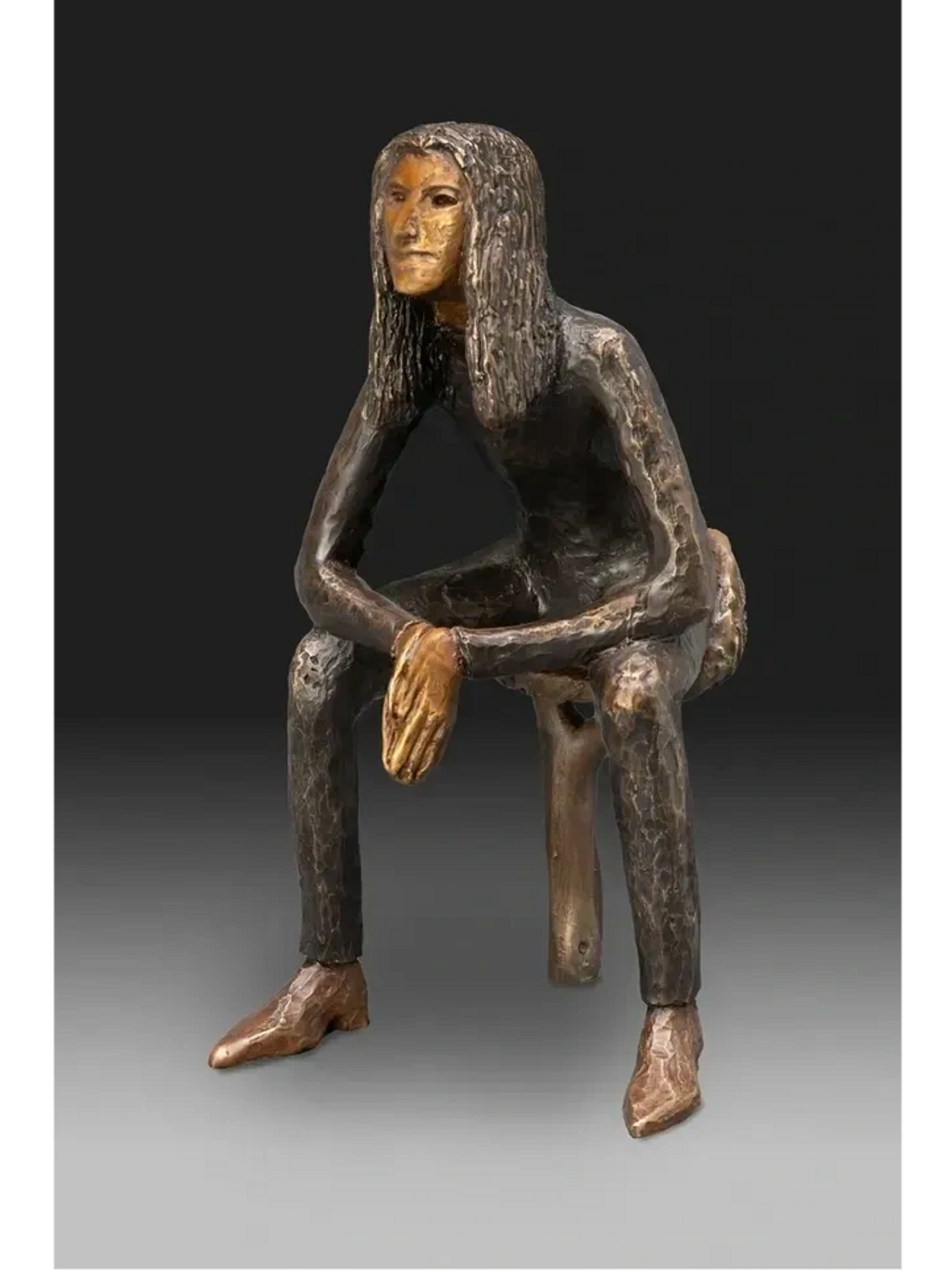 After sculpting female figures for 30 years, this was my first time sculpting a male. He slowly emerged as I struggled along. It took me a while to recognize him. He lives within my heart, is my dear friend, teacher, guide, family, and more. It feels like he has walked beside me forever. He is an iconic figure, ageless and timeless.